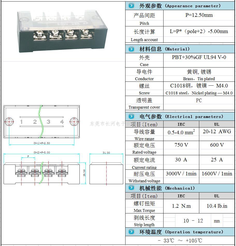 美规栅栏式接线端子CK900-04